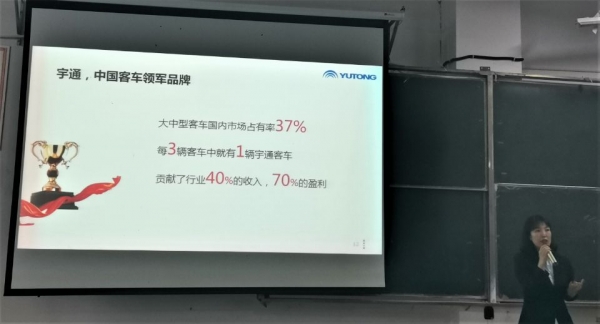 宇通集团招聘负责人杨女士就宇通集团的人才需求以及公司文化对同学们进行了讲解,同时也热情回答了同学们所关心的公司职业发展、住宿条件、工资福利等热点话题,并激励同学们要珍惜剩余不多的在校学习时光,调整好心态,勇敢踏入社会,迎接职场。