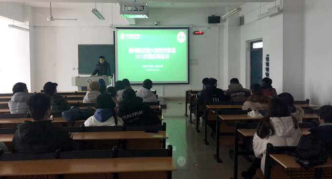 为做好2021届毕业生高质量就业工作,进一步落实校企产学研合作精神,12月29日下午14:30--16:00,园艺学院在二教107举行郑州航空港经济综合试验区(郑州航空港区)兴港投资集团专场就业宣讲会,2021届有意向的毕业生参会,宣讲会由岳建华老师主持。