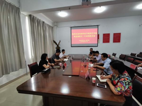 周俊国院长在会上分享了河南科技学院园艺学院近年来的发展历程和成功经验,对学院的人才培养提出建议,要能根据自身优势并结合学生情况,打造创新型人才、复合型人才、应用型人才。同时双方还就科研激励创新、实验室建设和管理、学生教学工作、就业指导、党建等方面内容进行了深入交流,就共同培养硕士研究生、互派师生交流学习等事项达成了初步意向。