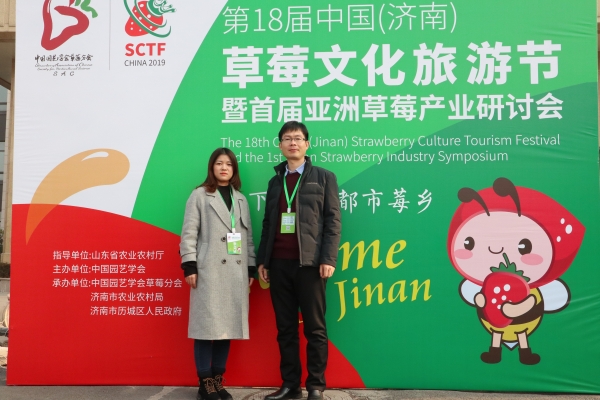 2019年12月18日-21日,园艺学院教师李亮杰、陈娟娟赴济南参加“第18届中国(济南)草莓文化旅游节暨首届亚洲草莓产业研讨会”大会。本届大会由中国园艺学会主办,中国园艺学会草莓分会、济南市农业农村局、济南市历城区人民政府承办,吸引了国内外草莓专家、草莓经销商、种植大户等千余名嘉宾,是一场集草莓文化交流、学术交流、商贸交流于一体的草莓盛会。