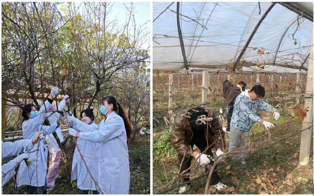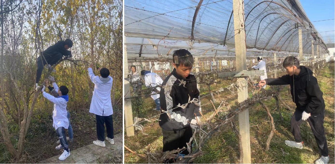 通过为期一周的实习实践,园艺师生不怕苦、不怕脏、不怕累、互帮互助,顺利完成了神农山庄阳光玫瑰、夏黑葡萄、黄金梨、石榴树的冬季修剪和树干涂白工作,并对修剪后的枝条进行整理。
