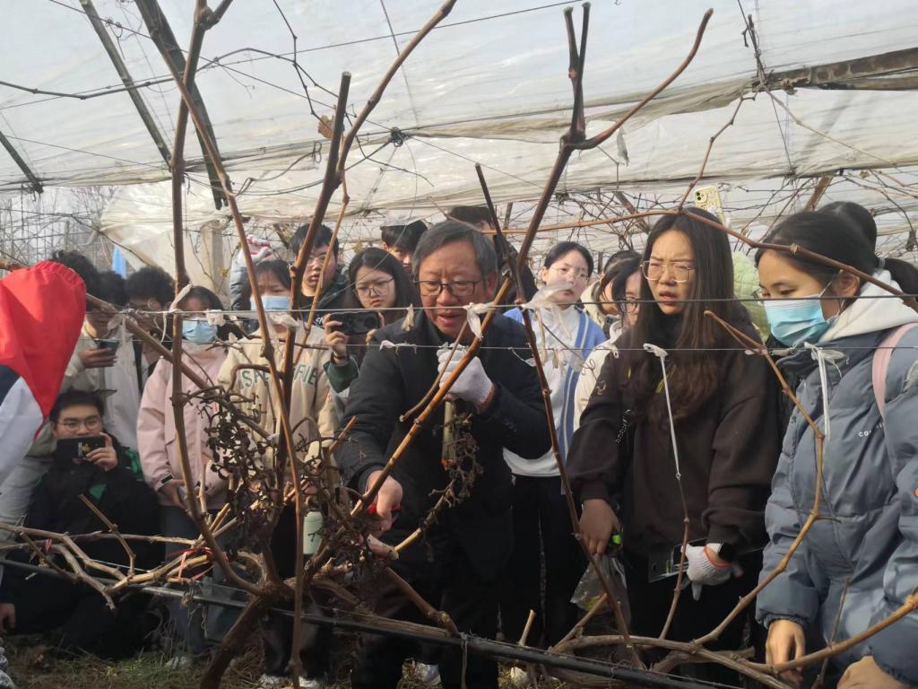 为了加强课程理论与生产实践相结合,提高学生实践动手能力,巩固所学专业知识。12月4-8日,按照果树栽培学课程实习教学安排,由课程组教师刘静带领园艺(专升本)23-1班34名学生前往校外实习基地神农山庄和校内实习基地开展葡萄、梨树、石榴等果树冬季整形修剪实习。实习期间,园艺学院特邀请果树学专家范宏伟教授莅临现场做技术指导。