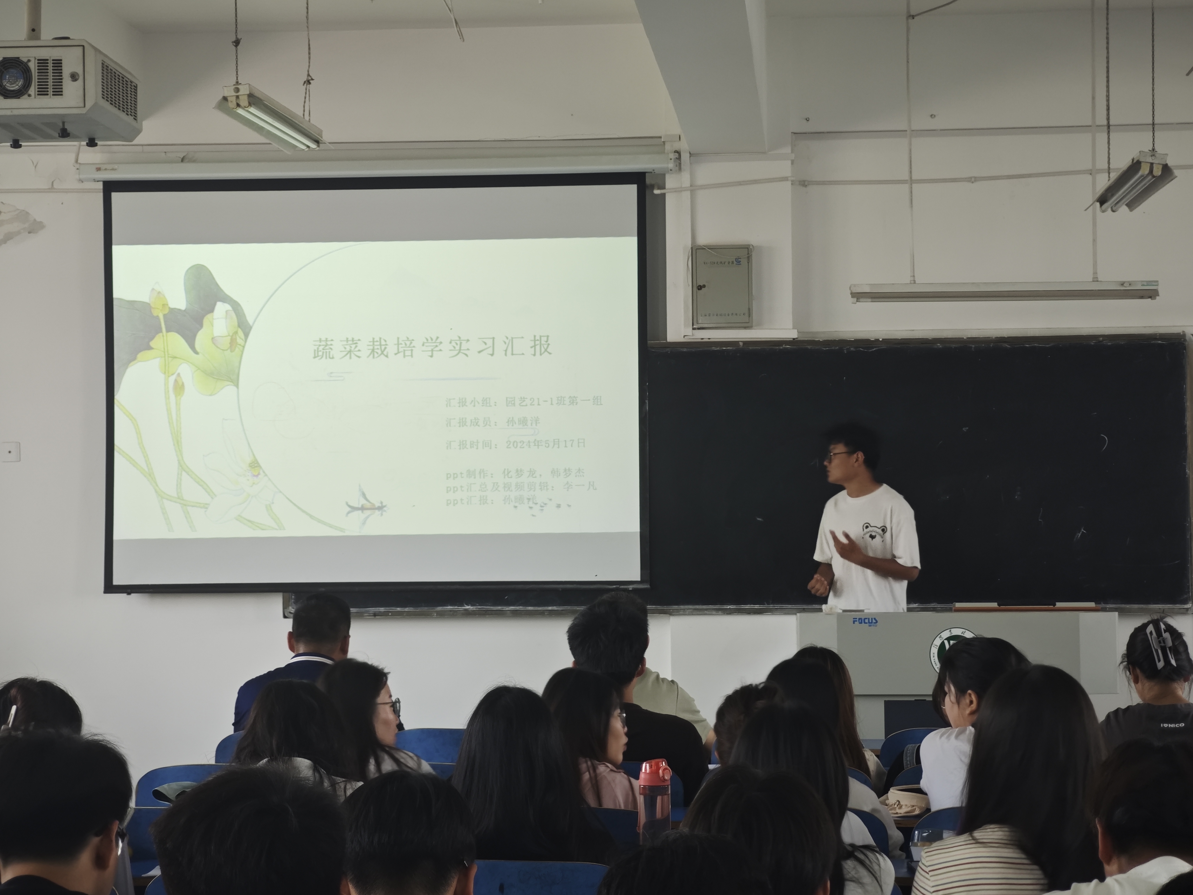 同学们通过对实习周深入了解蔬菜栽培生产的全过程,并以小组进行了汇报,老师对大家实习期间的表现和对实习的总结汇报进行了打分和点评,同学们都学到了很多实践技能并进行了分享,汇报时掌声不断响起。