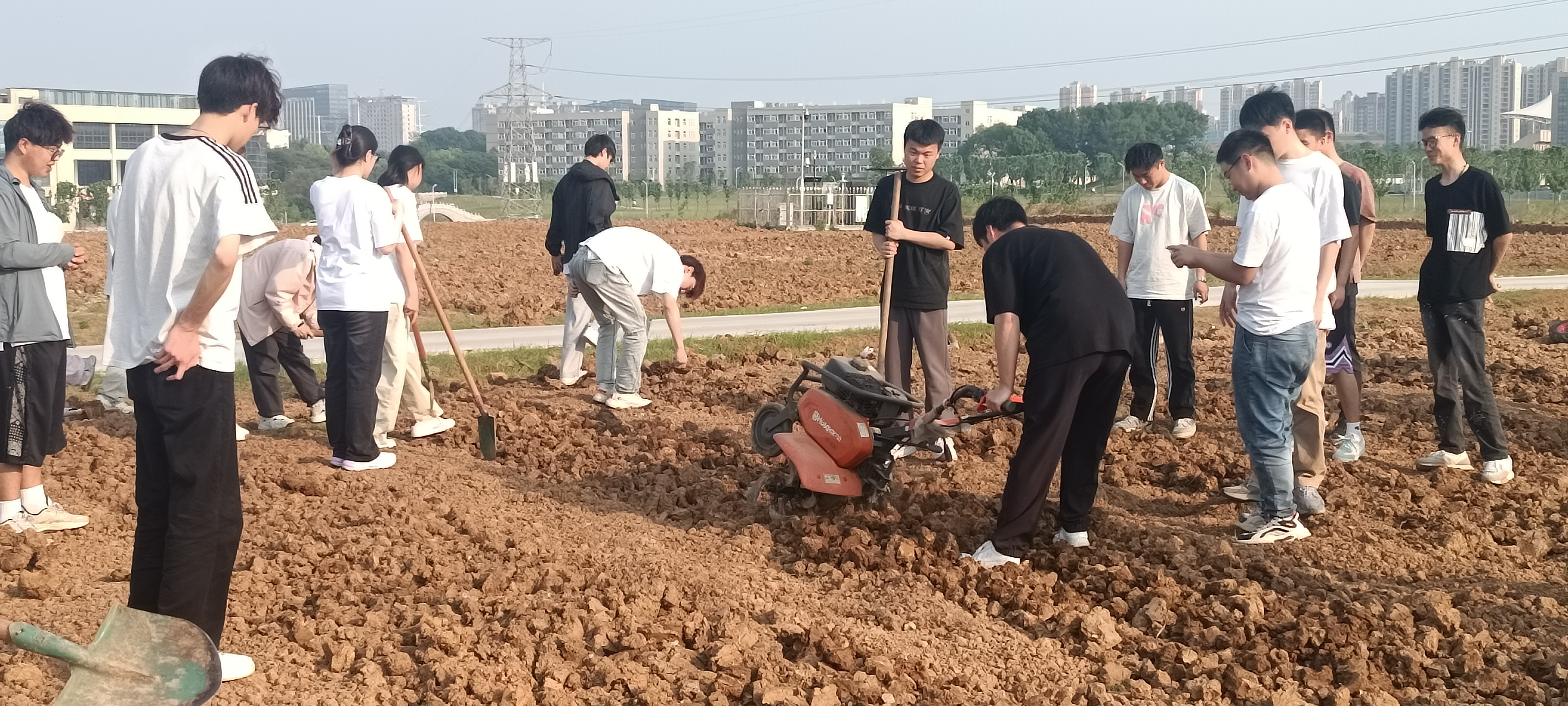 校内实习基地-匠园 学生使用微耕机翻地起垄