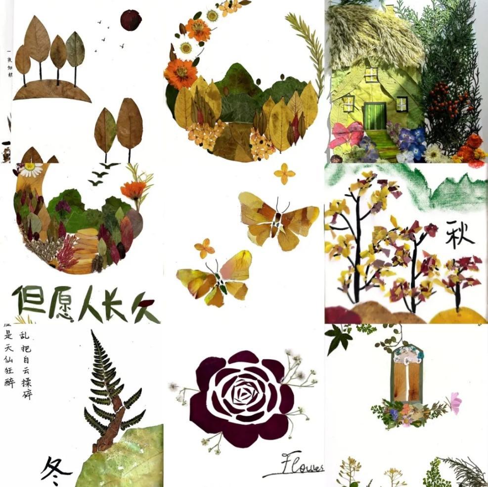 为期一周的实习中,同学们深入学习了如何采集、压制和保存各类花材以及如何将这些花材运用到各种创意作品中;学会了压花书签、压花贺卡、图案式压花画、插花式压花画、风景人物压花画的设计制作方法和技巧以及压花首饰、压花灯笼、压花扇等压花用品的制作方法和技巧。在如火如荼开展的实习期间,学生们展现出非凡的创造力与动手能力,创作了一系列精美的的创意压花作品,这些作品充满了自然的韵味和生命力,不仅展示了学员们的创意和技艺,也体现了压花艺术的独特魅力。