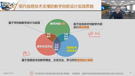 本次培训由何聚厚专家主讲,主要讲解了教学创新思维发展---数字化转型背景下教师教学能力发展内涵分析、教学重构创新设计---如何基于翻转课堂教学重构智能技术支撑的混合式教学、教学创新设计实践---如何基于国家智慧教育公共服务平台设计实践混合式教学等三个方面的内容。本次培训有针对性的讲解了什么是混合式教学、如何开展混合式教学、如何进行课堂效果评价等内容,使培训老师受益匪浅,为提升教学创新、打造一流课程提供了指导。