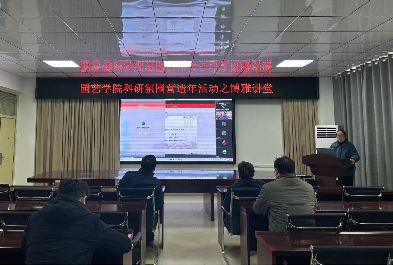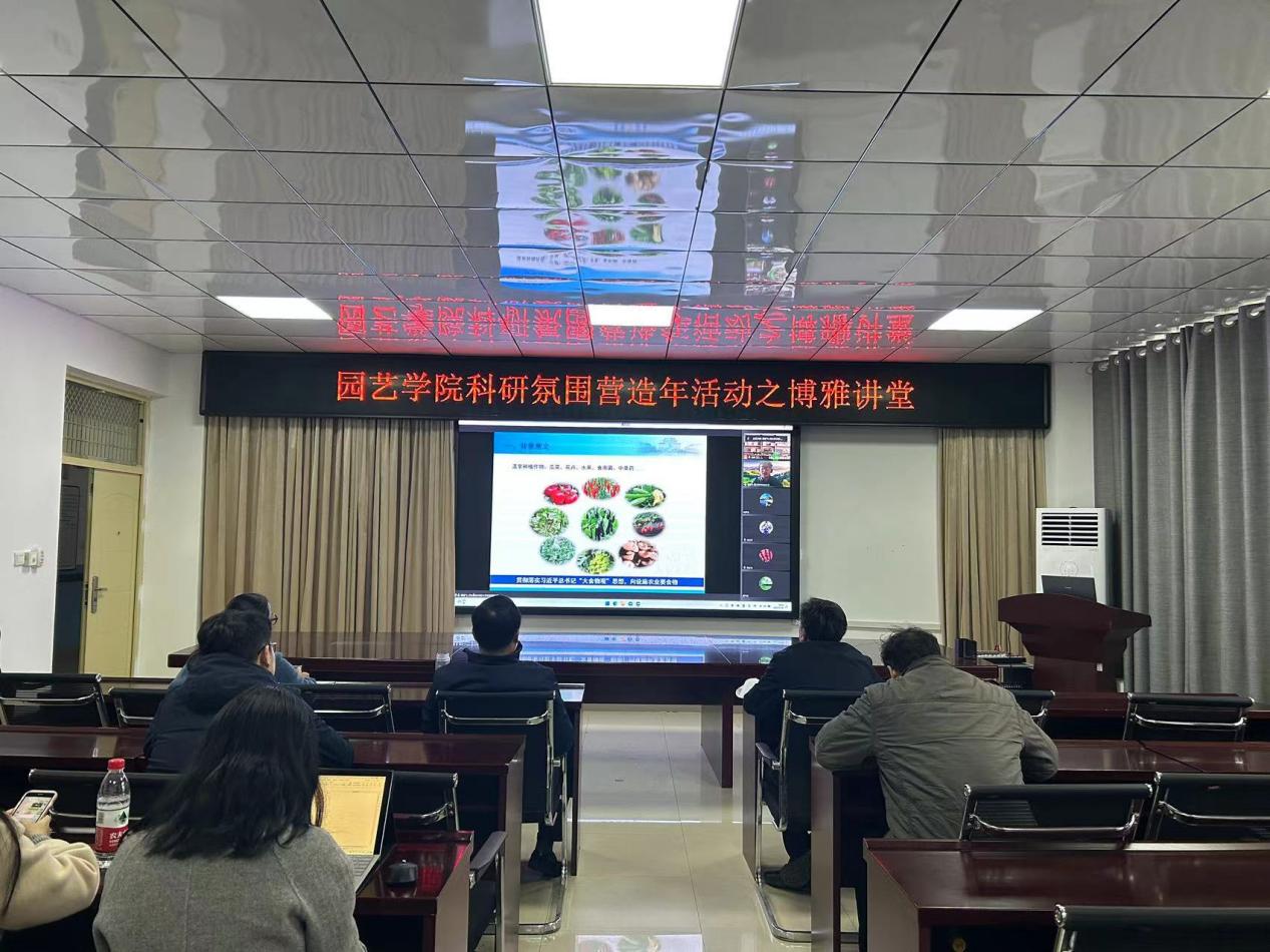 根据园艺学院科研氛围营造年方案安排,1129日下午,园艺学院举办了博雅讲堂学术报告会。本次活动特邀西北农林科技大学曹晏飞博士作了题目为“设施热环境调控研究进展”的学术报告,本次报告采取线上线下相结合的方式进行。本期博雅讲堂由园艺学院副院长何晖主持,园艺学院领导及200名师生参会。