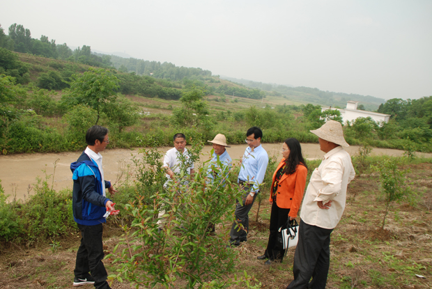 科技服务人员首先到光山县利民土地专业合作社(光山县四方景家庭农场),在合作社负责人杨长家、杨长太及三区项目培训的两名乡土专业技术人员的陪同下、到合作社栽培的软籽石榴园、猕猴桃园、桃园实地考察果树生长状况;对猕猴桃的搭架引蔓、软籽石榴与桃树夏季修剪、果树肥水管理等方面遇到的具体问题,现场给予了技术指导并进行了修剪示范。在光山县金合欢林茶专业合作社业务负责人张杰的带领下,对合作社种植的大叶女贞、桂花、银杏、红叶石楠等十多种园林苗木的夏季管理、苗木分栽、病虫害防治、销售等提出诸多可行性建议。