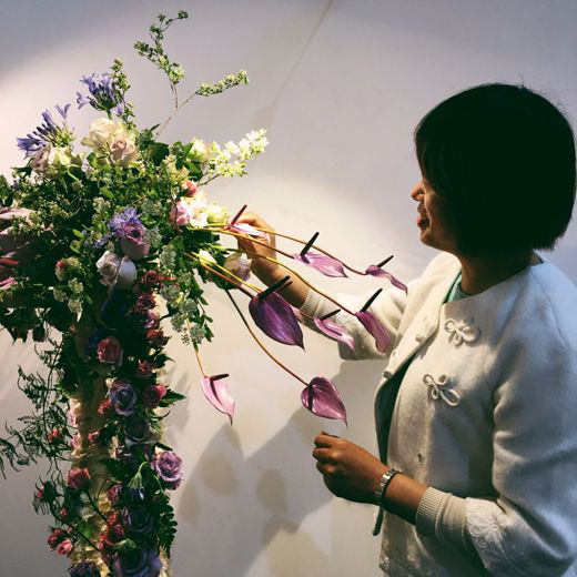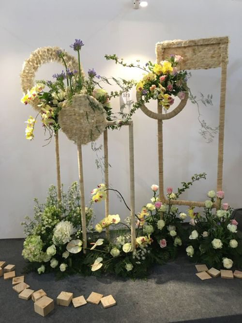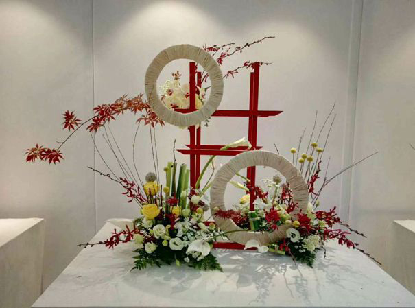活动期间,同学在杨老师的带领下对会场中品种丰富的花材进行识别,掌握了常用切花素材的品种、花语及特性,并在老师的讲解下对南阳月季的历史、发展现状和月季在南阳城市绿化中的应用情况有所了解,开阔了眼界,丰富了专业知识。在创作过程中,通过杨老师的即时讲授,对插花的手法技巧和作品架构的制作程序有了进一步的理解,从而将课堂学习的理论知识更好的运用于实践中。学生们观摩了现场其他插花大师的作品,运用专业知识欣赏各件作品的手法技艺,从专业角度出发分析作品的优点与不足,积极思考,汲取经验。