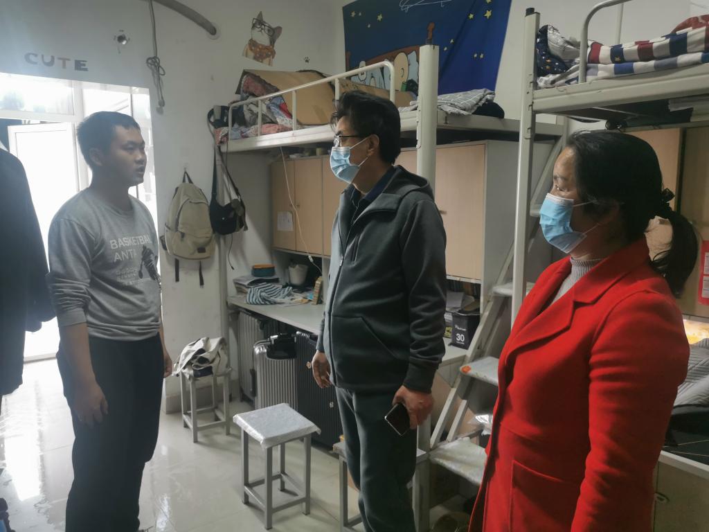 在走访完准毕业生宿舍后,赵一鹏向同行的何晖副院长提出几点要求:一是学院一定要多关心毕业生的论文、生活、心理、就业等,多了解学生的需求并及时提供帮助;二是学院及导师要针对研究生初试过线的同学,在复试或调剂方面多给意见,帮助学生收集信息并进行指导,助力学生少走弯路;三是毕业班辅导员老师要前移工作阵地,多和学生谈心谈话,特别是受当前疫情影响,毕业生就业等可能受限,辅导员要及时了解学生的思想动态、安全状况,加强毕业生教育、管理、服务。