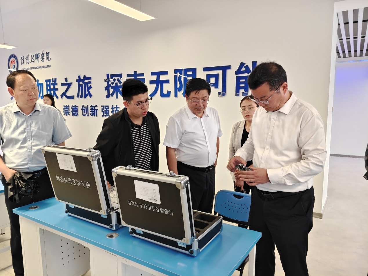 下午15:30,易军鹏一行先后参观了信阳技师学院物联网、智能制造及工学基础相关实训室,并实地走访比亚迪产业学院和北方职教集团汽车教具生产中心。通过现场观摩与讲解,双方就实训设备应用、产教融合模式及校校合作经验进行了充分探讨。信阳技师学院在智能制造领域的实践成果给考察团队留下了深刻印象。
