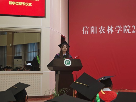 在深情寄语环节,毕业生代表王鑫鑫(园艺21-1班)回顾了求学点滴,表达了对母校与恩师的深切感激和对未来的憧憬;在校生代表郭康威(园艺22-4班)则向学长学姐送上诚挚祝福,表示将以他们为榜样继续奋进;教师代表何晖以师长的殷切嘱托,勉励毕业生们永葆求知热情,勇担社会责任。