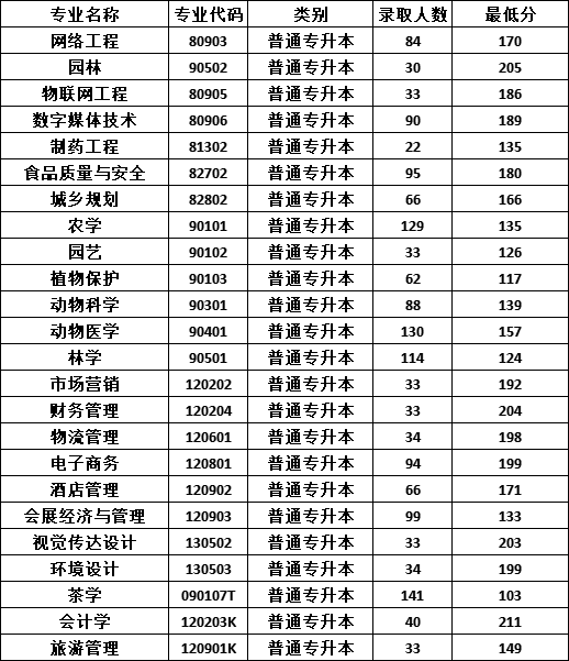 2023年普通专升本录取最低分