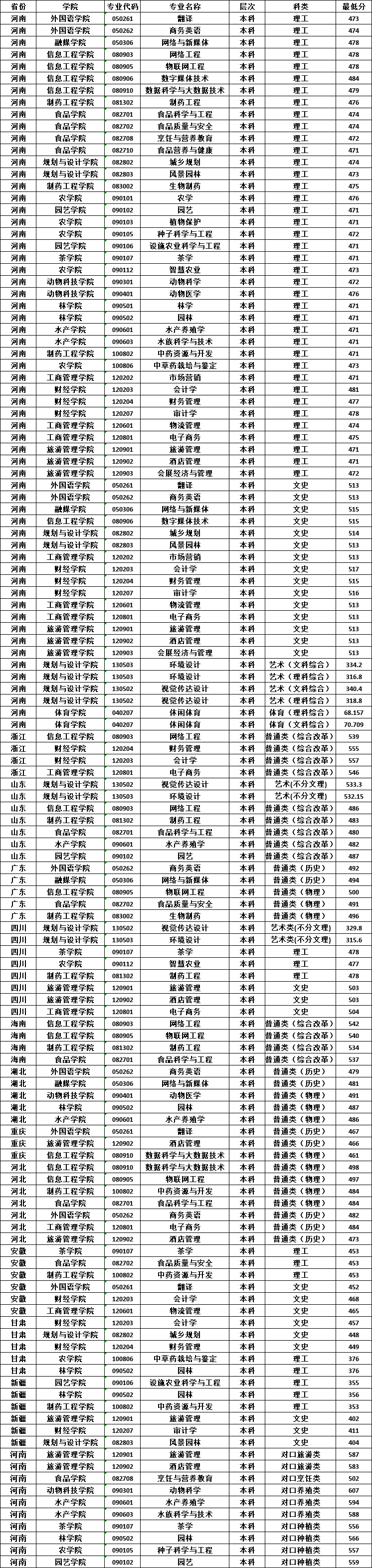2023年分省分类本科专业录取最低分