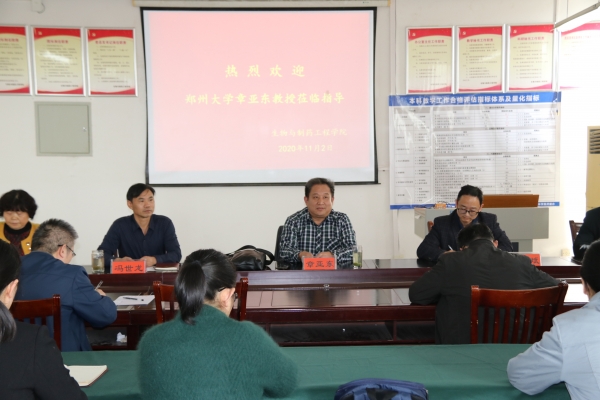 2020年11月2日,郑州大学章亚东教授来校指导生物与制药工程学院专业发展、课程建设、本科教学评估等方面工作,并为beat365在线平台官网师生作了一场题为《立报国志 担时代责 育栋梁材》的学术报告。