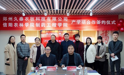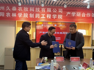 徐自涛代表郑州久泰农牧科技有限公司对协议的签订表示祝贺,并建议,打造学校科研与企业研发基地;建立学生对口专业实习平台;做好高校研究成果在企业的转化。