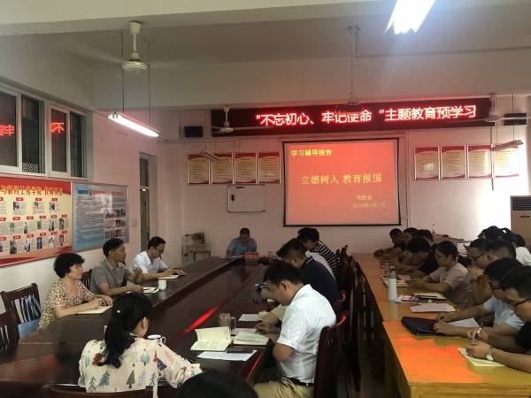 会上,冯书记传达了关于开展“不忘初心 牢记使命”主题教育预学习的通知精神,并对学院开展相关工作做了安排部署;接着,冯书记以“立德树人 教育报国”为题作了辅导报告。他强调要进一步统一思想,为开展“不忘初心 牢记使命”主题教育营造良好氛围,切实贯彻落实习近平总书记在全国高校思想政治工作会议、全国教育大会精神,深刻领会“坚持把立德树人作为根本任务”的丰富内涵,并结合“三全育人”的要求,提高站位,树牢“四个意识”,为加快教育现代化,推进学校全面协调快速发展做出应有的贡献。