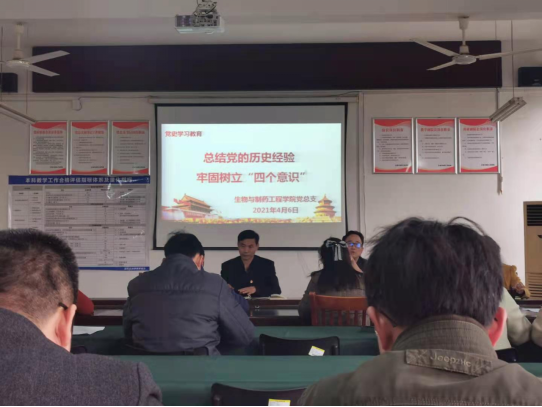 2021年4月6日下午,我院召开全体教师大会,集体学习了习近平总书记在2015年6月至2018年1月期间对党的历史经验的总结内容节录《总结党的历史经验,牢固树立“四个意识”》,党总支书记冯世龙强调必须牢固树立政治意识、大局意识、核心意识、看齐意识,自觉在思想上政治上行动上同党中央保持高度一致。在工作过程中以初心使命引领,在具体岗位建功。