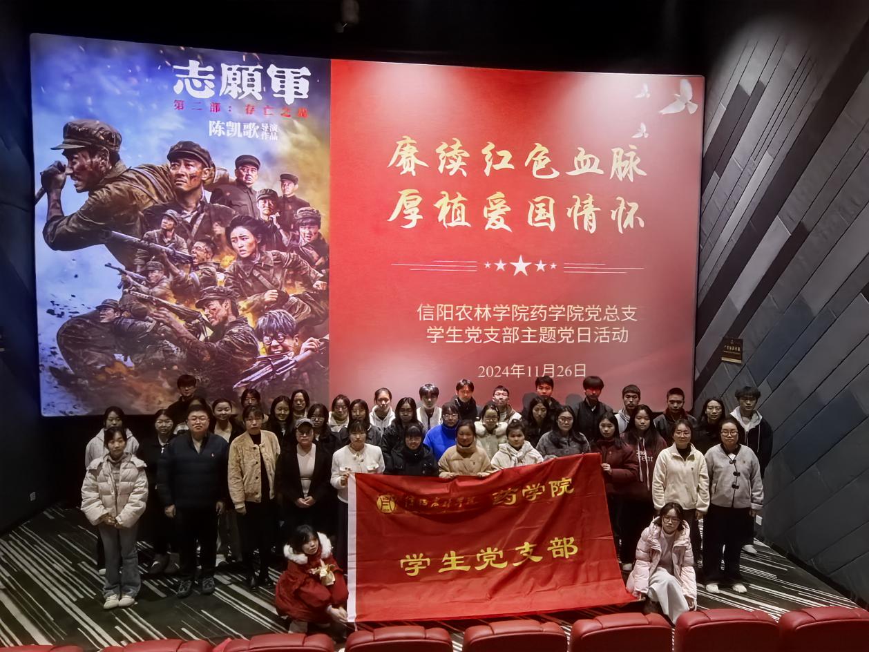 为弘扬爱国主义精神,汲取奋进力量,增强广大学生党员的责任感与使命感,11月26日药学院党总支学生第一、二、三、四党支部在万达信合影城开展红色观影主题党日活动。
