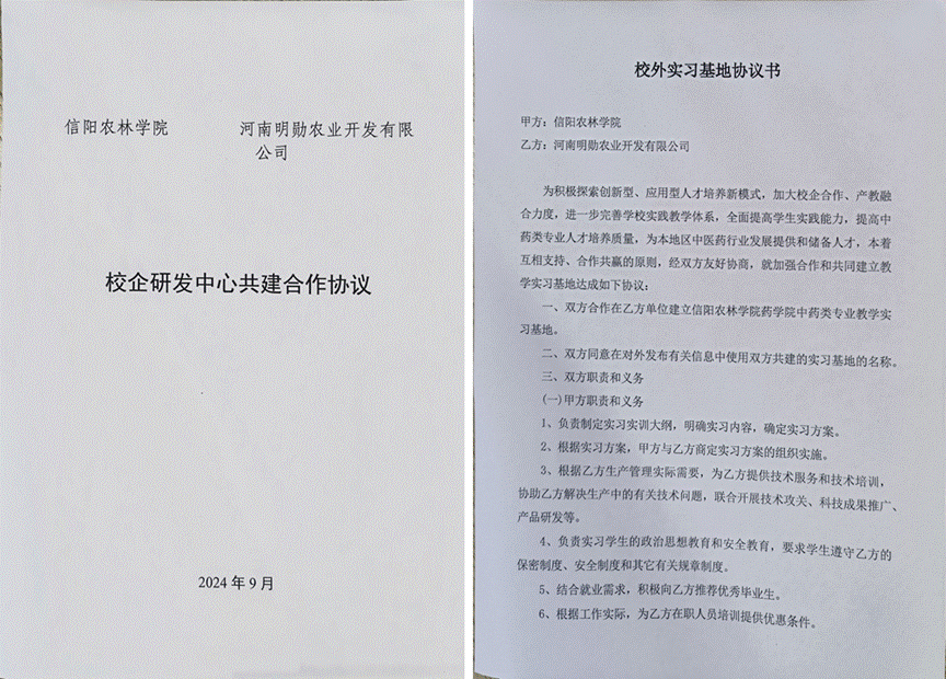河南明勋农业开发有限公司是一家专注于中药材种植、加工、运输、贮藏及销售的企业,拥有丰富的实践经验和市场资源。双方经过多次深入交流,决定建立全面的校企合作关系,共同推动中药材产业的高质量发展。根据合作协议,双方将继续加强在中药材种植、加工、资源利用等关键技术方面的研究,共同推动科技成果的转化和应用;同时,积极探索在中药材产业链延伸、品牌建设等领域的合作机会,共同打造区域中药材品牌,提升中药材产业的附加值和竞争力。