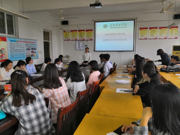 5月30日上午,生物与制药工程学院召开2019届毕业生专升本考试动员会,针对2019年专升本考试及离校时间安排给学生做专门辅导。动员会由学工组专职辅导员刘青老师主持,全体2019届专升本考生参加。