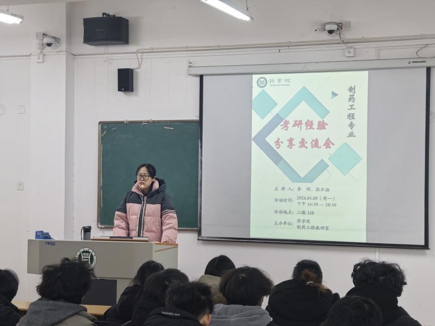 1月5日,药学院制药工程教研室在二教110教室举办考研经验分享交流会。专业教师李明、张亦涵结合自身经验,为同学们带来了一场干货满满的分享盛宴。