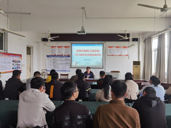 5月11日中午,生物与制药工程学院在2C527召开了2021届毕业生就业工作座谈会。学院团总支书记陈颐辉,2021届毕业班班长、团支书及部分在校学生参加会议。