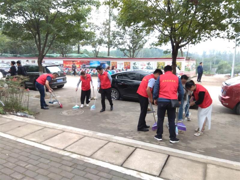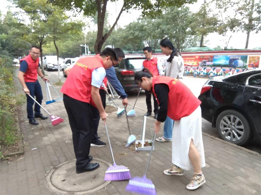 9月26日下午,生物与制药工程学院教工分会成员(化学教研室)在教工分会文体委员李尽哲、教研室主任王欣、实验室主任孙伟的带领下在实验楼周围开展义务清扫活动。
